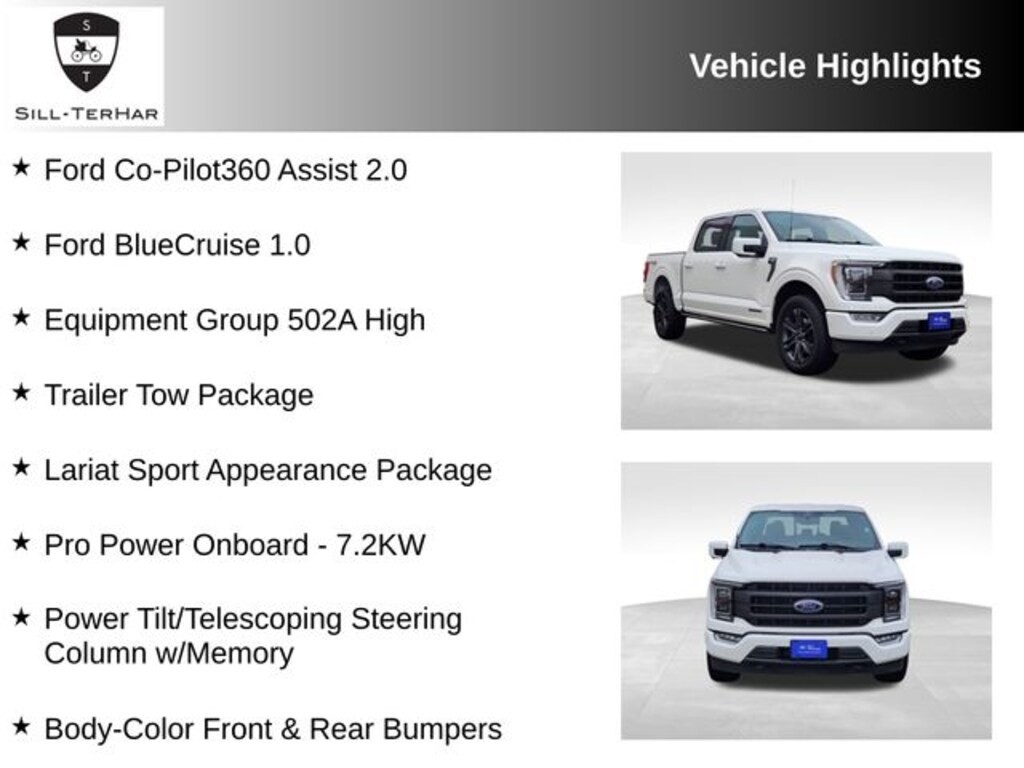 The attention to detail is evident throughout this vehicle. The Lariat Sport Appearance Package adds a touch of elegance with its unique interior finishes, chrome single-tip exhaust, and accent-color angular step bars. Meanwhile, the Trailer Tow Package and Pro Power Onboard system make this F-150 a versatile workhorse, capable of handling your toughest tasks with ease.