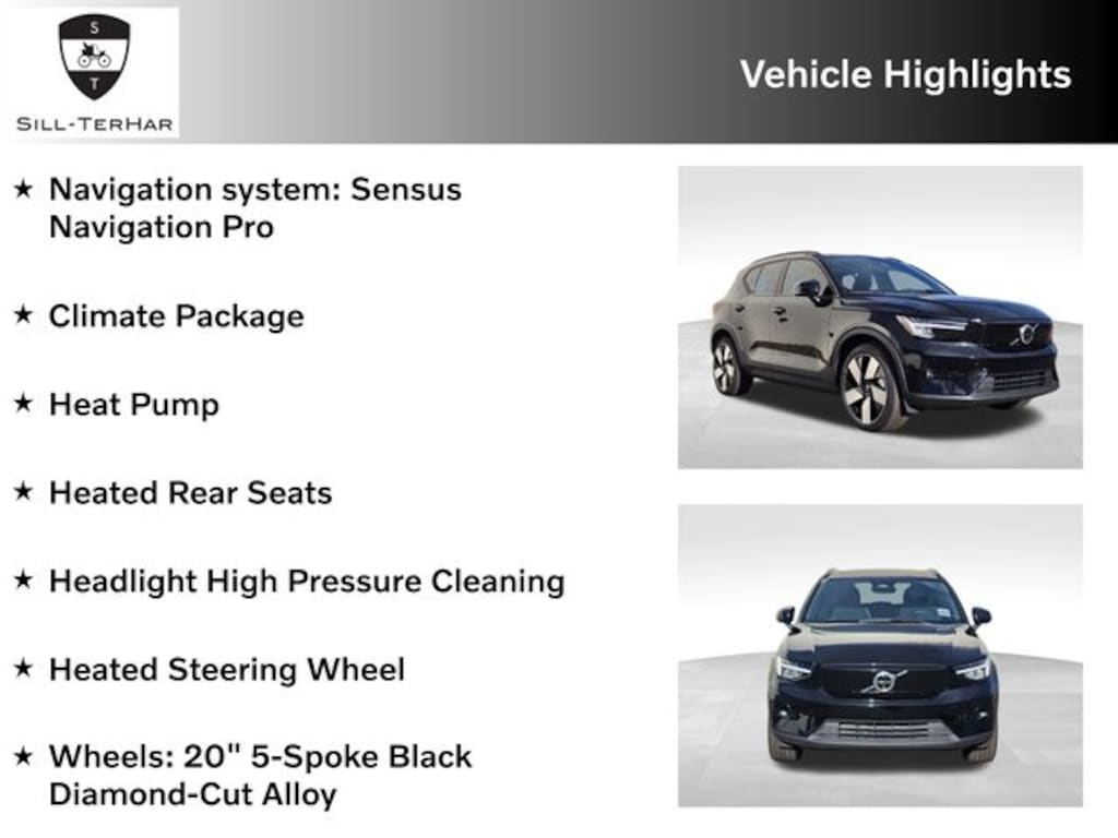 This 2023 Volvo XC40 Recharge Pure Electric is rare!, Climate Package, Headlight High Pressure Cleaning, Heat Pump, Heated Rear Seats, Heated Steering Wheel, Navigation system: Sensus Navigation Pro, Wheels: 20" 5-Spoke Black Diamond-Cut Alloy.