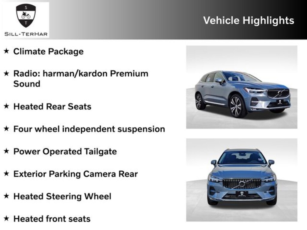 This 2023 Volvo XC60 is rare!, Climate Package, Exterior Parking Camera Rear, Four wheel independent suspension, Heated front seats, Heated Rear Seats, Heated Steering Wheel, Power Operated Tailgate, Radio: harman/kardon Premium Sound, Wheels: 20" 5-Multi Spoke Black Diamond Cut Alloy.