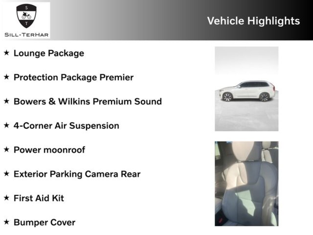 This 2023 Volvo XC90 Recharge Plug-In Hybrid is rare!, 4-Corner Air Suspension, Backrest Massage Front Seats, Bowers & Wilkins Premium Sound, Bumper Cover, Cargo Tray, Exterior Parking Camera Rear, First Aid Kit, Lounge Package, Nubuck Headliner, Power moonroof, Protection Package Premier, Rubber Floor Mats, Wheel Locks, Wheels: 21" 8-Multi Spoke Black Diamond Cut Alloy.