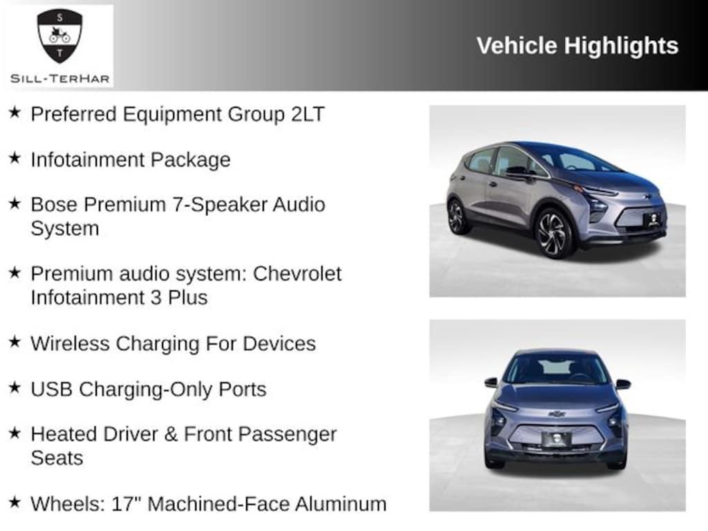 This 2023 Chevrolet Bolt EV is rare!, Bose Premium 7-Speaker Audio System, Heated Driver & Front Passenger Seats, Infotainment Package, Preferred Equipment Group 2LT, Premium audio system: Chevrolet Infotainment 3 Plus, USB Charging-Only Ports, Wheels: 17" Machined-Face Aluminum, Wireless Charging For Devices.