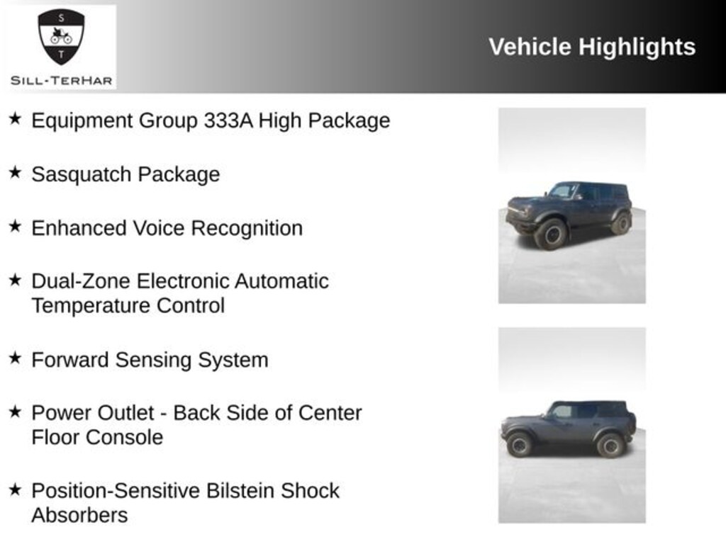 - This Bronco is rare and equipped with the desirable Equipment Group 333A High Package, Sasquatch Package, and a host of advanced technologies.