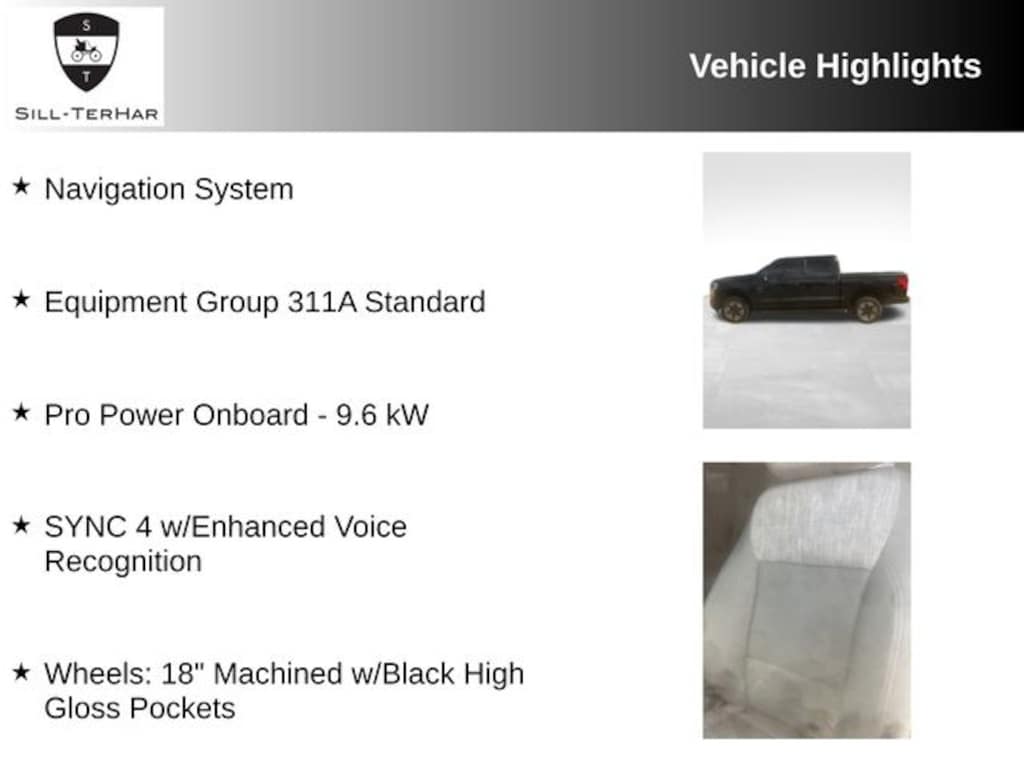 Delving deeper, the F-150 Lightning XLT comes equipped with the impressive Equipment Group 311A Standard, providing a wealth of premium features. Highlights include the SYNC 4 with Enhanced Voice Recognition, a state-of-the-art Navigation System, and stunning 18" Machined with Black High Gloss Pockets wheels.