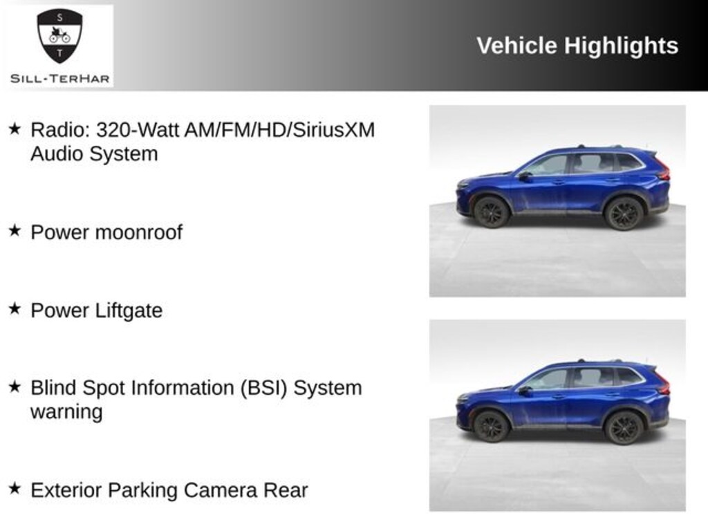 - Boasting a spacious and well-appointed interior, the CR-V Hybrid Sport-L is designed to cater to your every need. Enjoy the convenience of a power liftgate, the safety of the Blind Spot Information (BSI) System, and the enhanced visibility provided by the Exterior Parking Camera Rear.