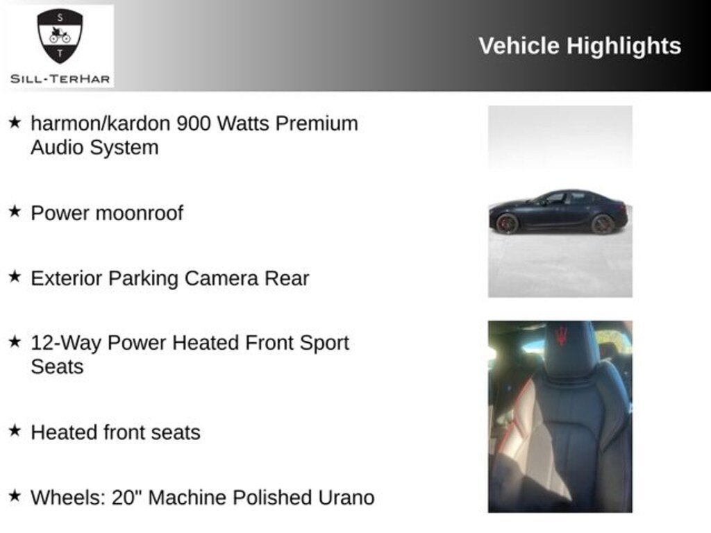 This 2021 Maserati Ghibli is rare!, 12-Way Power Heated Front Sport Seats, Exterior Parking Camera Rear, harmon/kardon 900 Watts Premium Audio System, Heated front seats, Power moonroof, Wheels: 20" Machine Polished Urano.