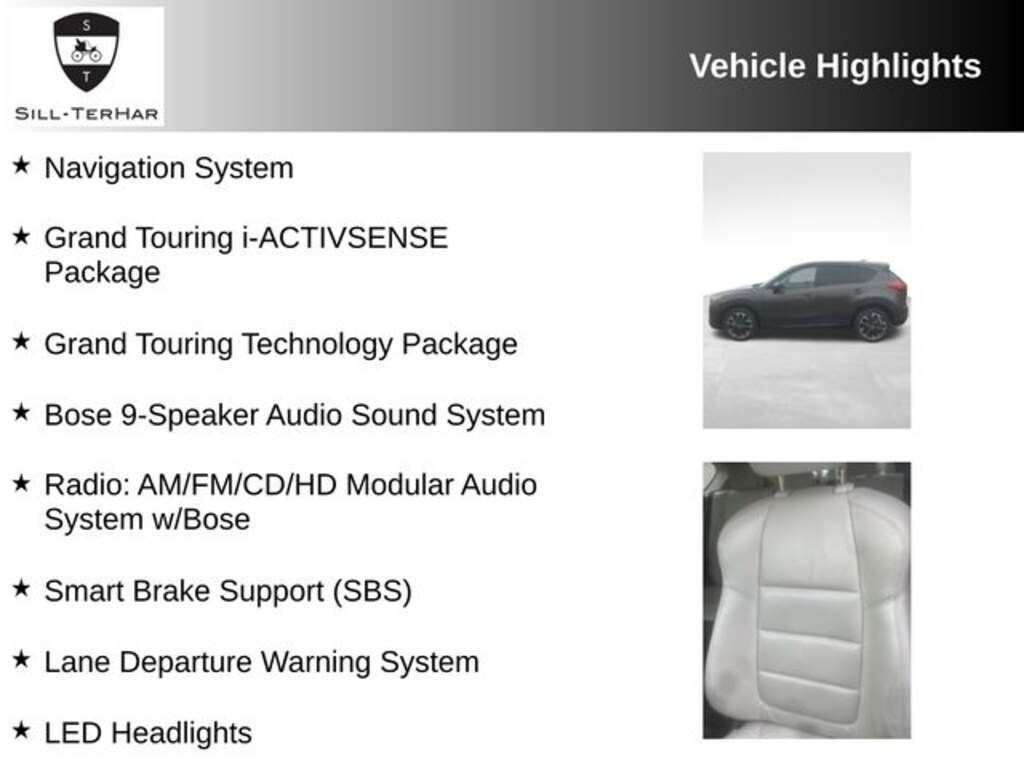 This 2016 Mazda CX-5 is rare!, 19 x 7J Aluminum Alloy Wheels, Auto Dimming Rearview Mirror w/HomeLink, Bose 9-Speaker Audio Sound System, Distance Recognition Support System (DRSS), Grand Touring i-ACTIVSENSE Package, Grand Touring Technology Package, Heated Front Sport Shape Seats, High Beam Control (HBC), Lane Departure Warning System, LED Foglights, LED Headlights, LED Signature Daytime Running Lights, LED Signature Rear Combination Lights, Mazda Radar Cruise Control (MRCC), Navigation System, Radio: AM/FM/CD/HD Modular Audio System w/Bose, Smart Brake Support (SBS), Smart City Brake Support System.
